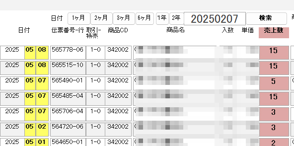 select * from view_all_uriage_top200k where itemcd=’999999′ and day_uriage > ‘yyyymmdd’)
