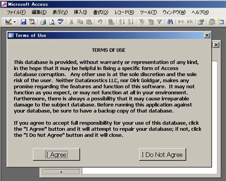 このメッセージ、Accessファイルが壊れたことを意味します。