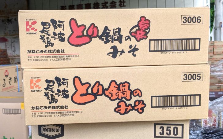 秋冬商戦に向け仕入れを開始した鍋関連商品 今日は、かねこ味噌「阿波尾鶏とり鍋みそ」シリーズを仕入れました。